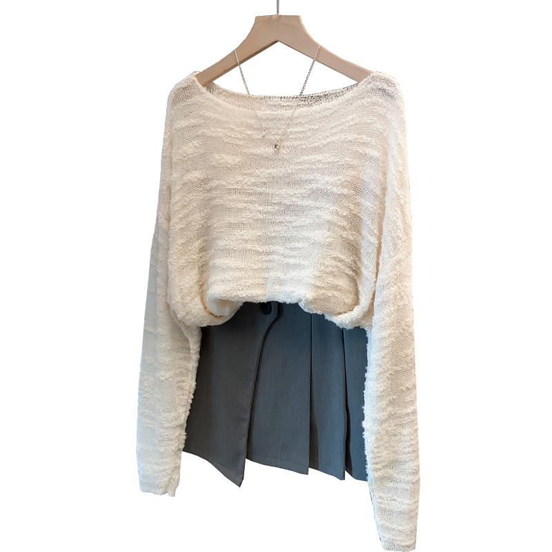 新款 女2025秋季 宽松圆领毛衣 针织开衫 飞鸟和新酒插肩袖