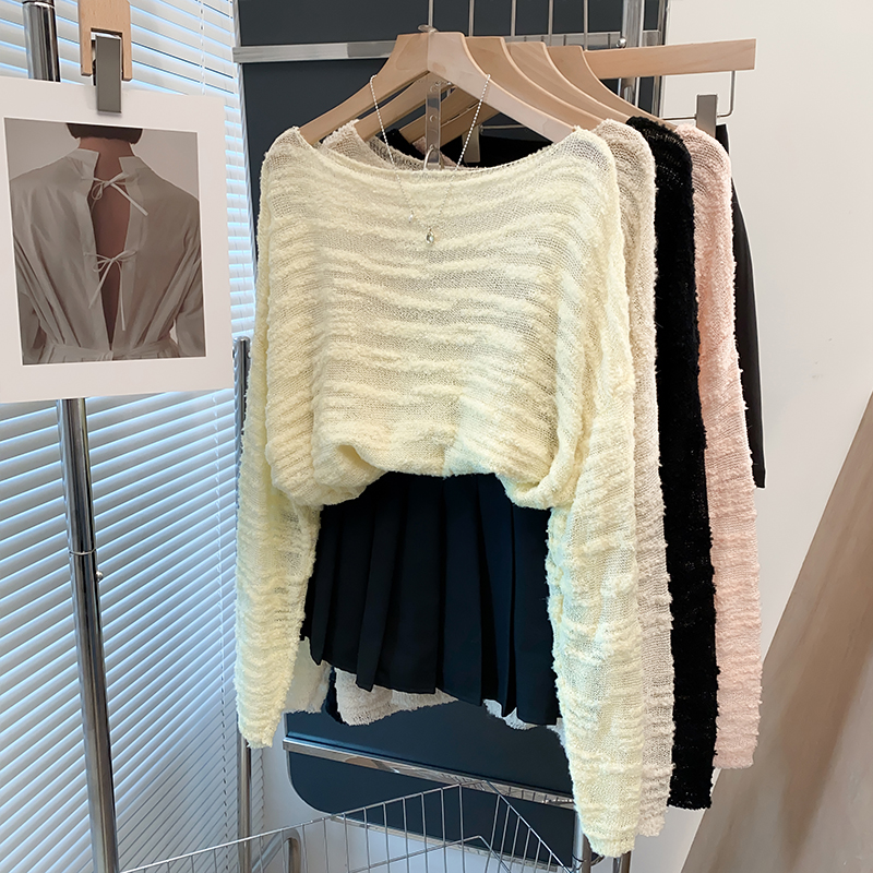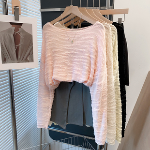 上衣短款 喇叭袖 毛衣2025秋季 穿搭新款 阔色绿色镂空长袖 女装 针织衫