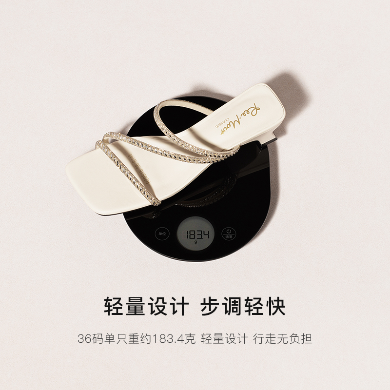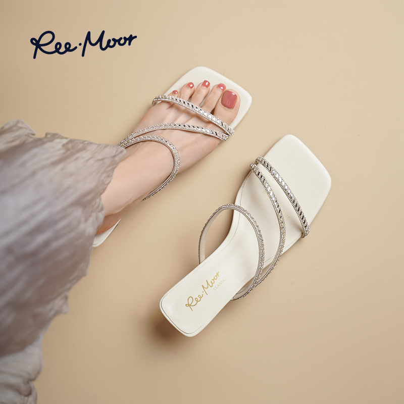 气质细带凉鞋 REEMOOR2025夏季 女配裙子法式 露趾水钻一字拖鞋 新款