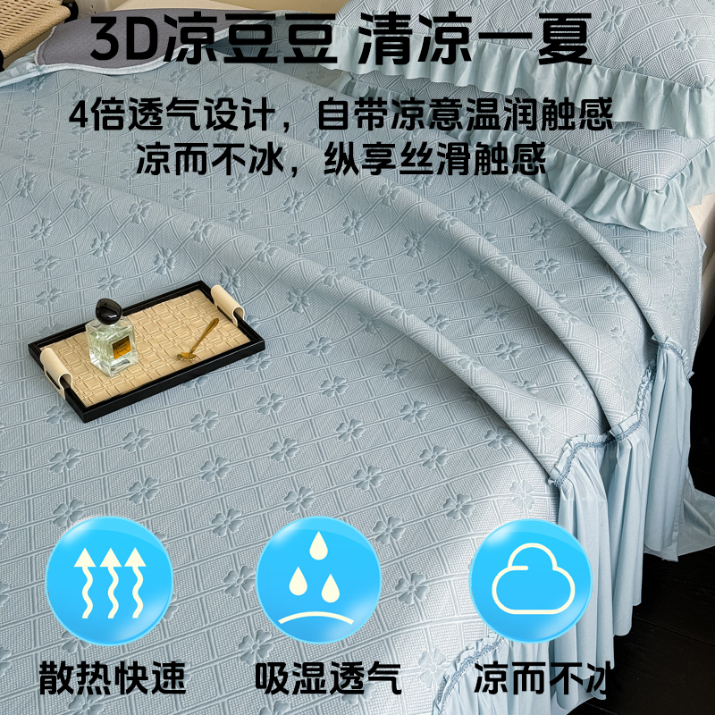 夏天冰丝凉席三件套夏季 卡通凉感冰豆豆软席可水洗学生宿舍空调席