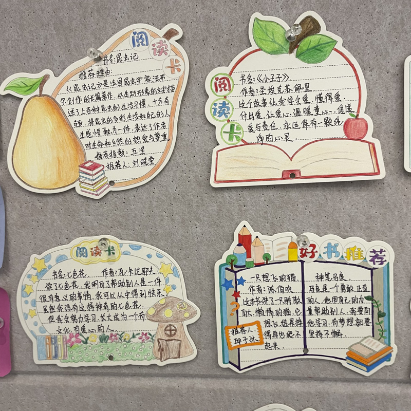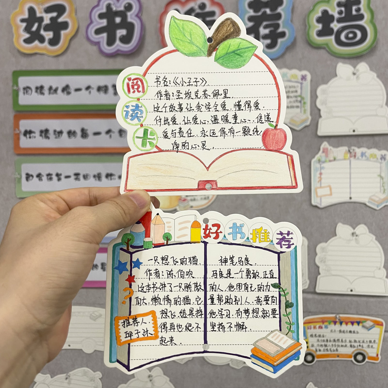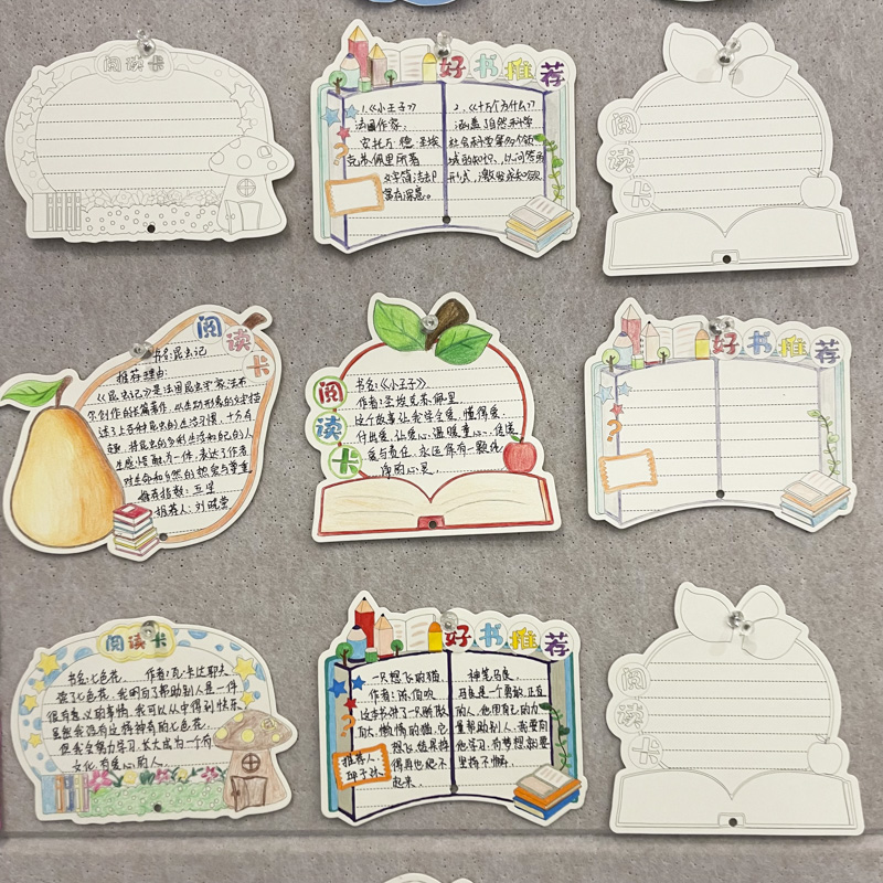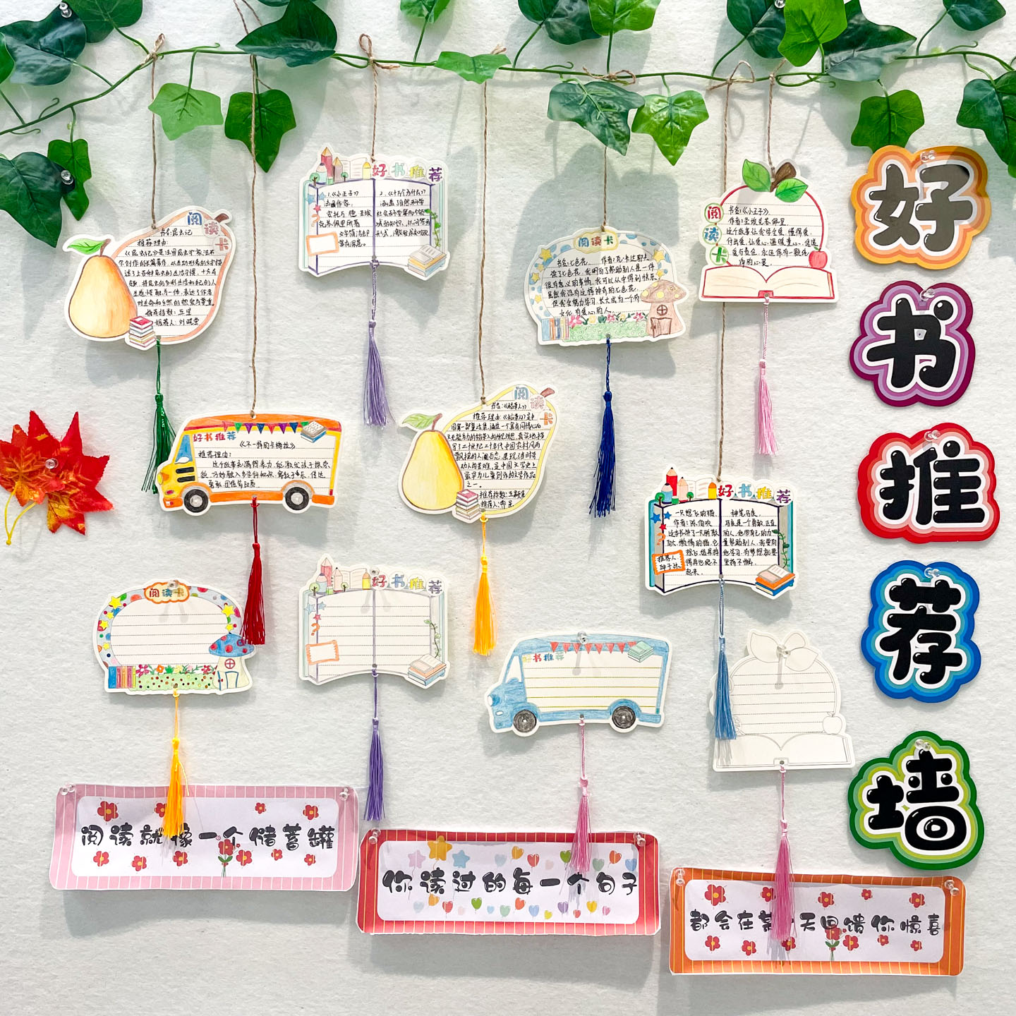好书推荐 阅读记录DIY涂色书签学生用自制材料包异形卡片幼儿园半成品线稿涂色贺卡班级文化墙教室读书角布置