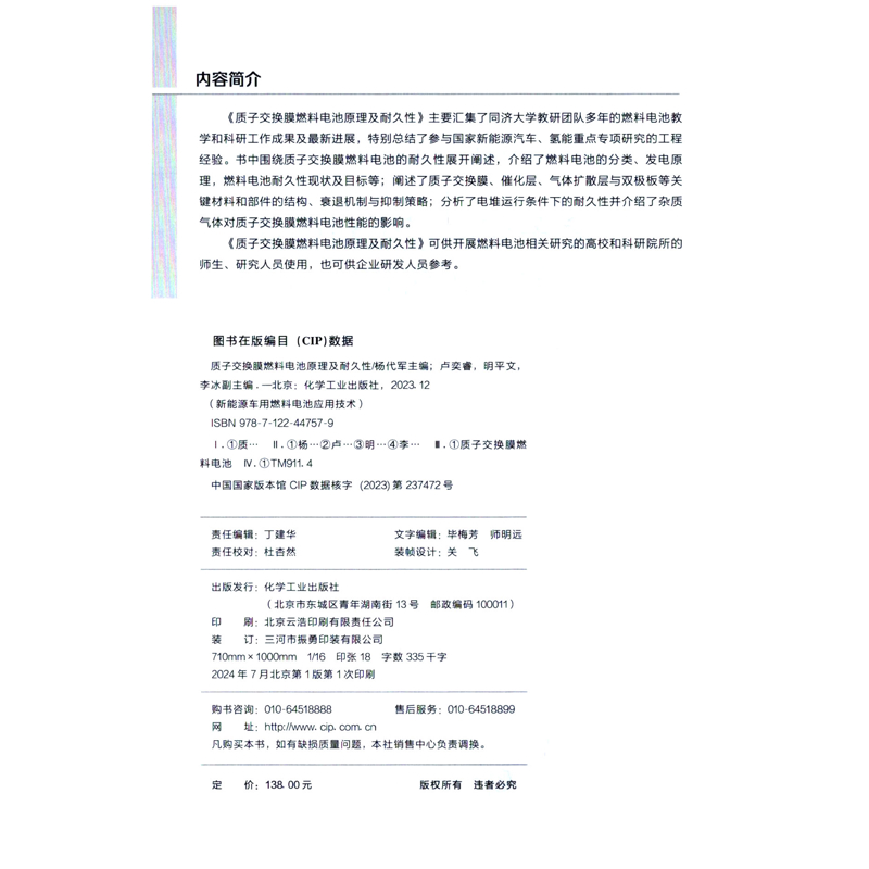 社新华书店正版 新能源车用燃料电池应用技术 质子交换膜燃料电池原理及耐久性杨代军环境科学化学工业出版