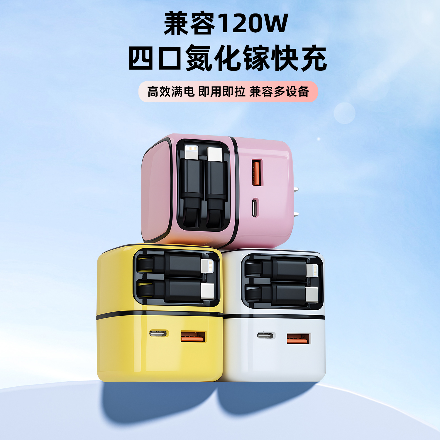 丘仰45W氮化镓充电器适用iPhone苹果17Promax华为手机65W快充抽拉自带线充电头typec iPhone17ProMax首选