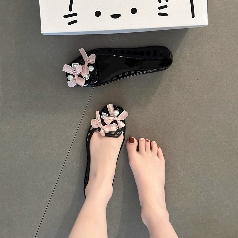 女款 百搭蝴蝶结水晶鞋 2025夏季 新款 韩版 百搭外穿舒适凉鞋 时尚