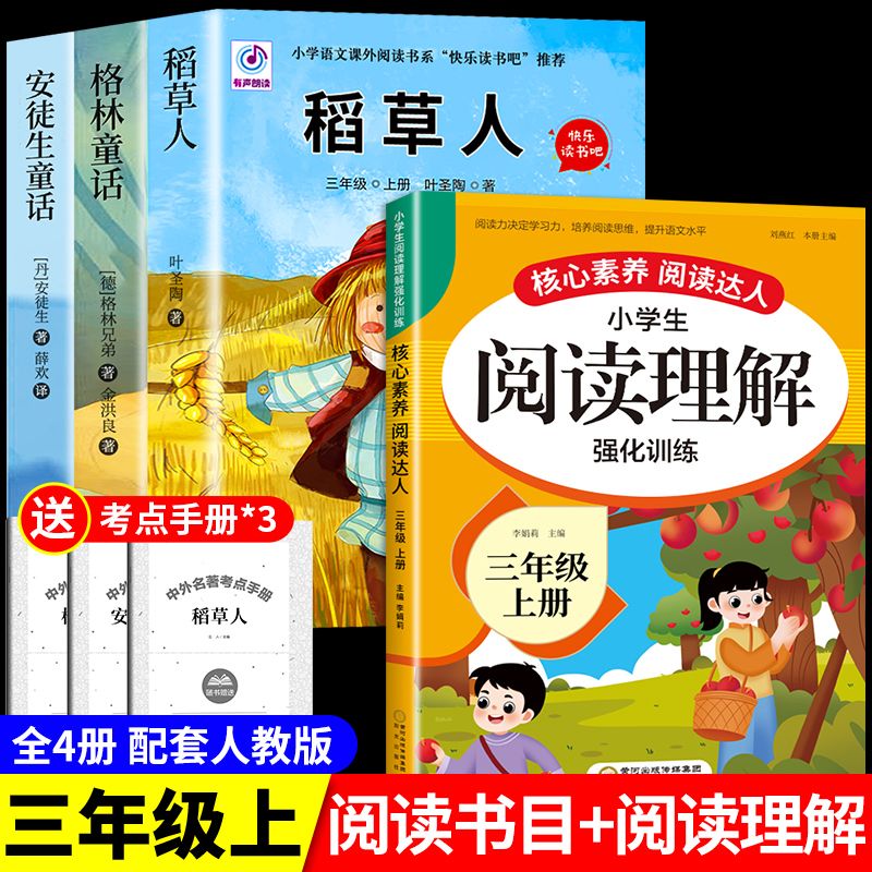 全套3册稻草人三年级上册必读正版 课外书安徒生童话全集格林童话故事书小学快乐读书吧三上课外B阅读书籍稻草书叶圣陶同步作文