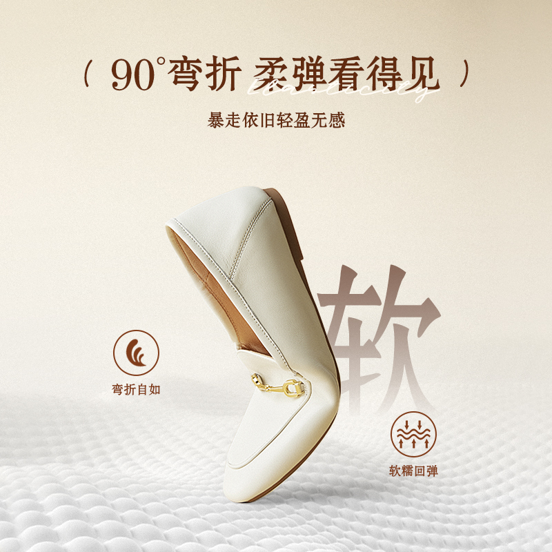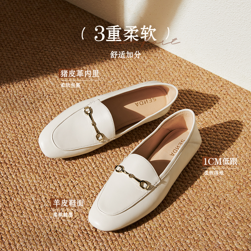 乐福鞋 森达豆豆鞋 25新款 秋女鞋 黑色单鞋 软羊皮皮鞋 双11预售