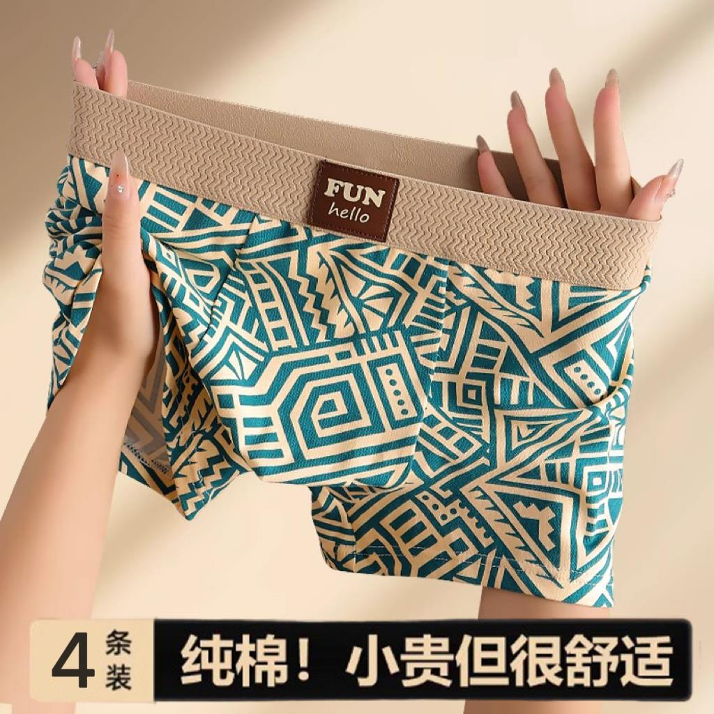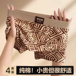 内裤 无痕平角裤 纯棉四角2025新款 复古男生款 抗菌 夏季 潮流印花男士