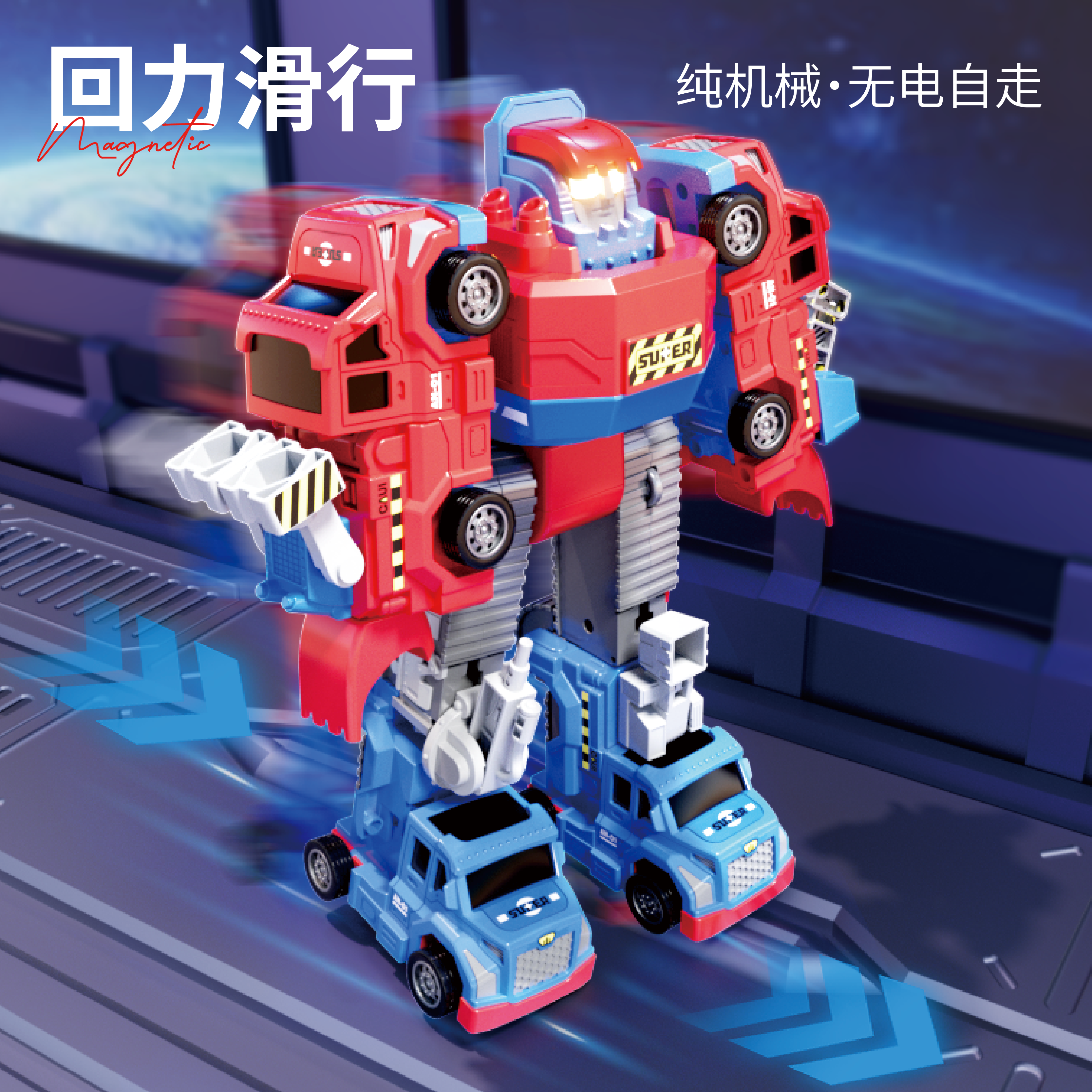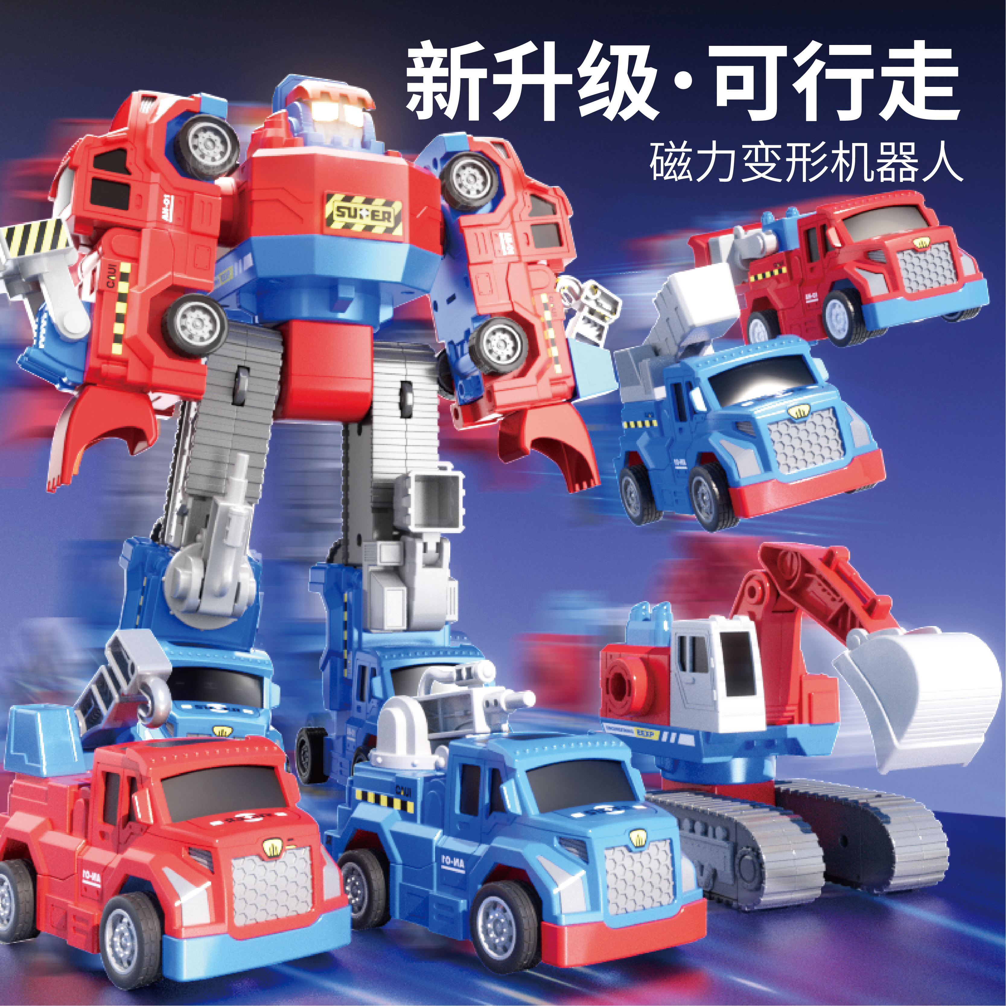 儿超喜磁力回力拼接儿童玩具益智拼装 变形工程车金刚机器人3岁6