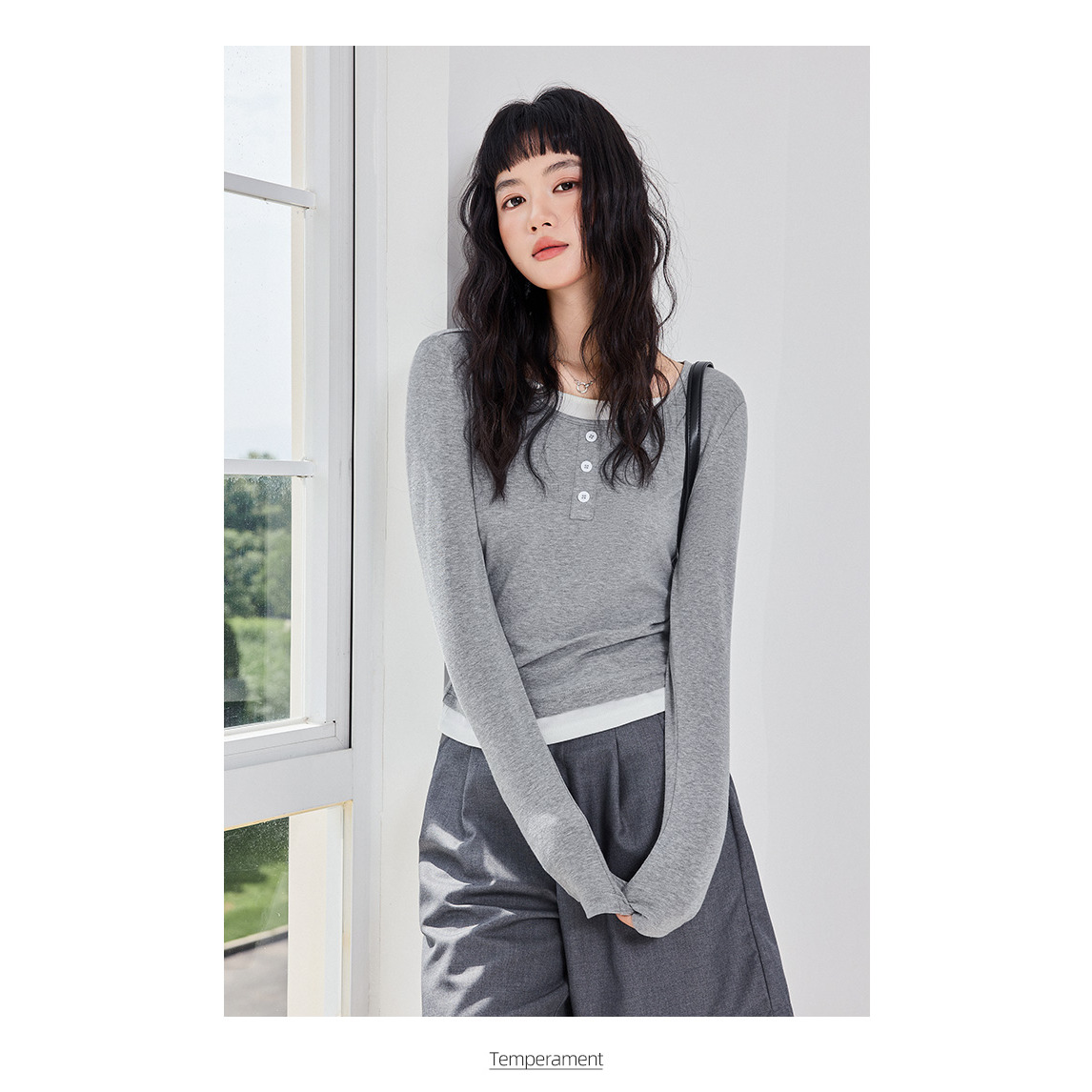 新款 t恤女2025夏季 超好看百搭流行女士上衣女Q 长袖 班尼路撞色修身