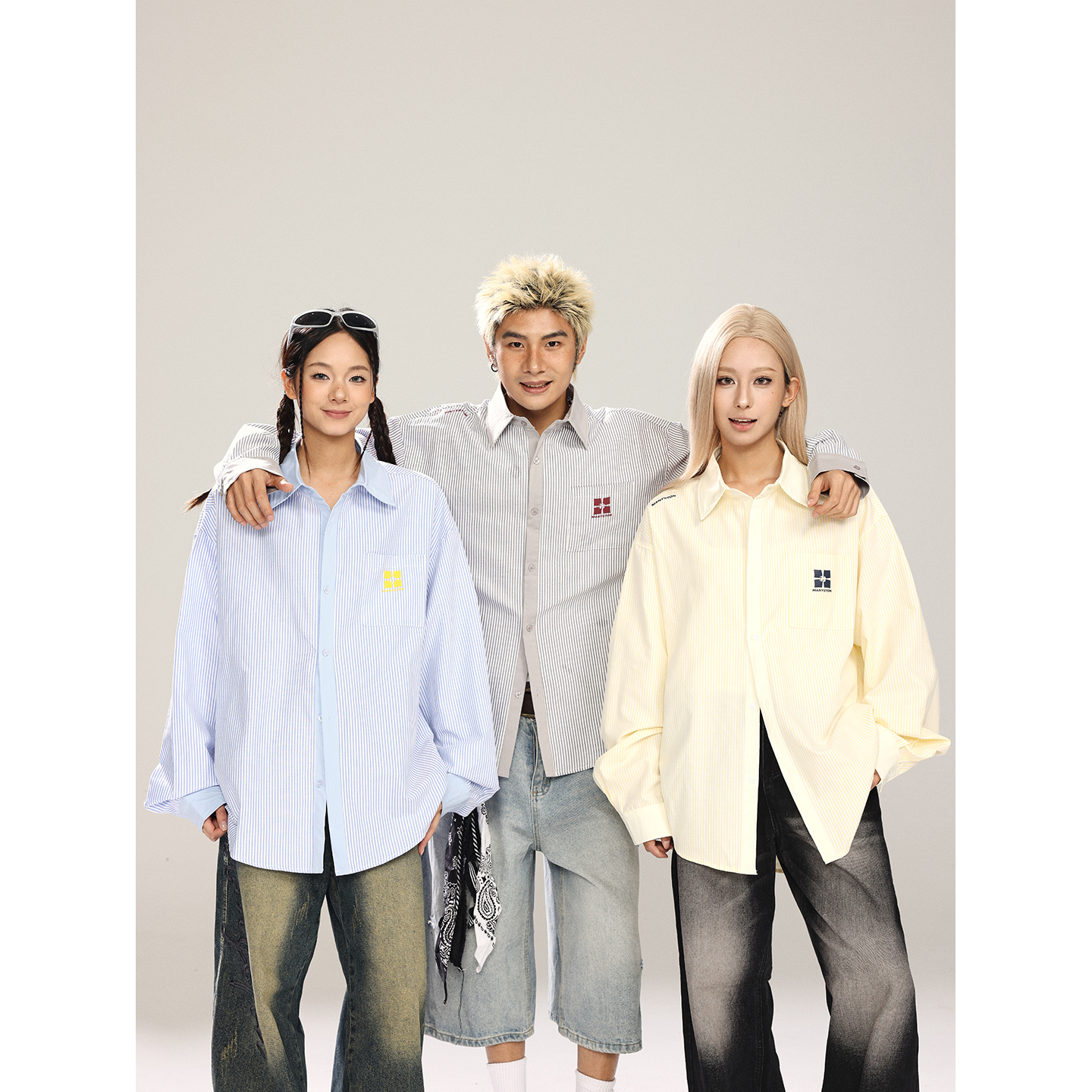 春秋季 MANYSTON美式 男款 POLO领衬衫 潮牌宽松休闲情侣衬衣 条纹长袖