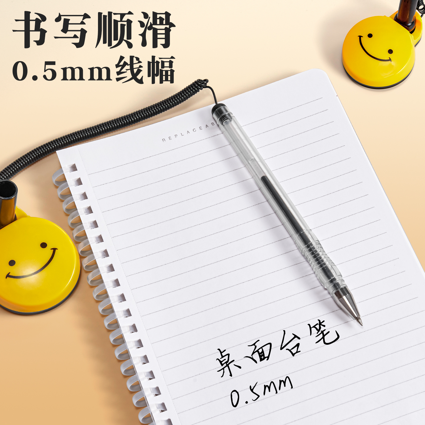 台笔桌面固定签字笔带线笔座酒店柜台财务吧台商务粘桌笔创意前台防丢笔可粘贴速干0.5mm黑色中性笔办公黑笔