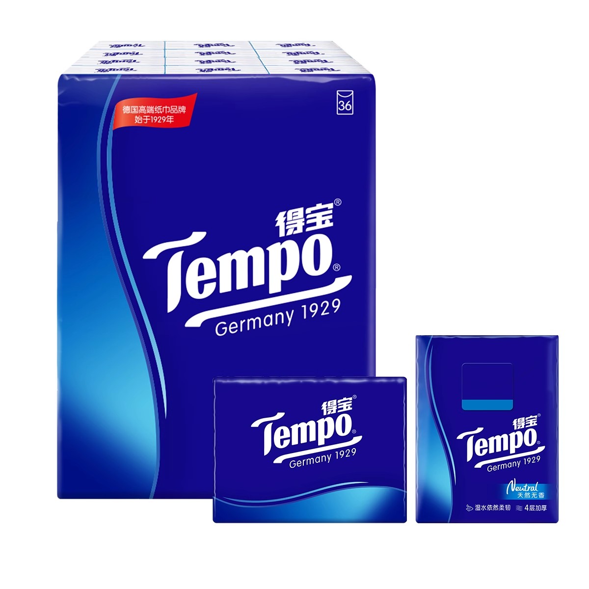 Tempo得宝手帕纸经典 无香餐巾纸4层加厚72包小包纸巾轻便携随身装