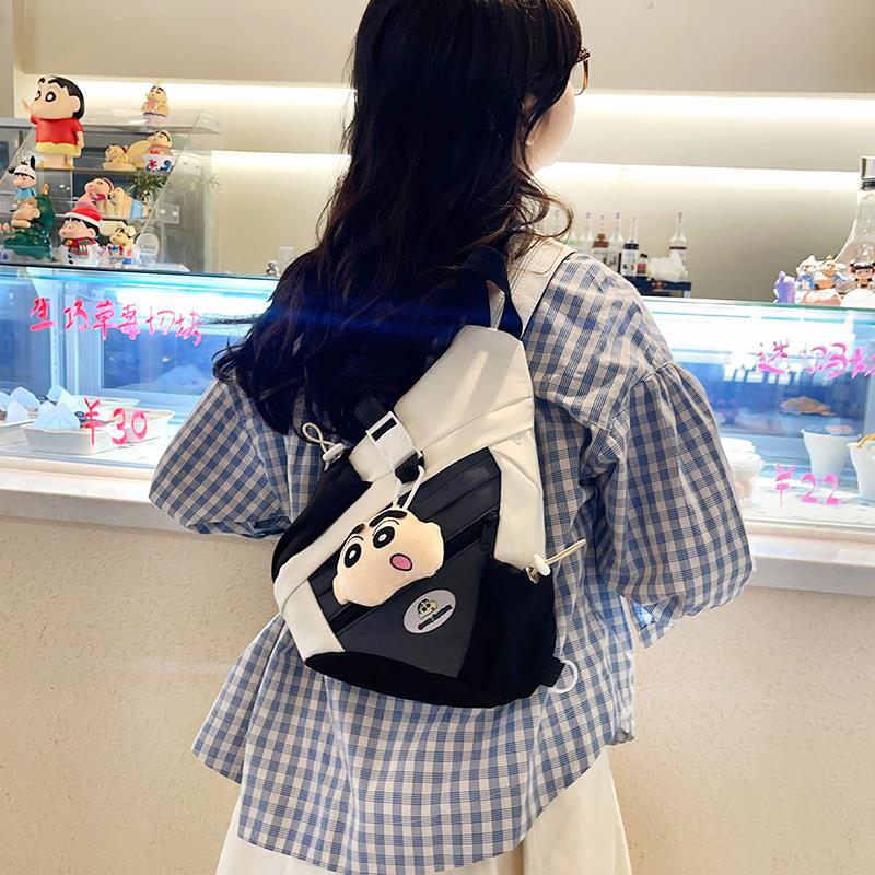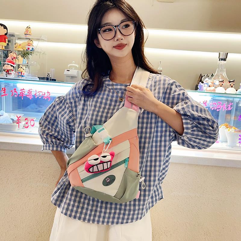 蜡笔小新时尚 森系多巴胺撞色轻便腰包大学生夏天日系胸包 潮流夏季