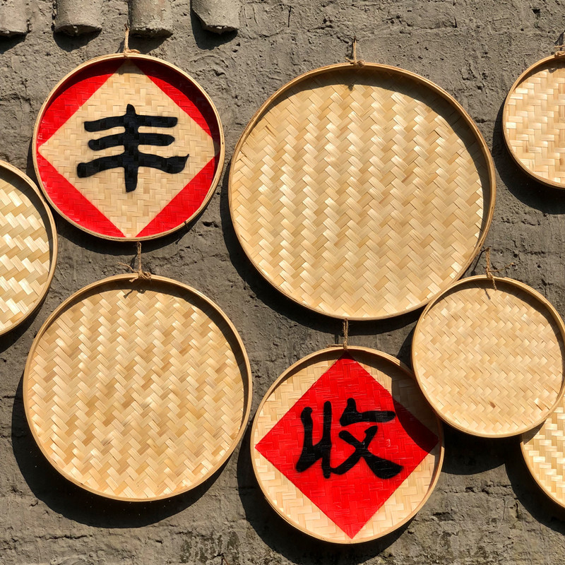 圆形簸箕竹制品五谷丰登丰收字匾新农村建设墙饰乡村振兴餐厅挂件