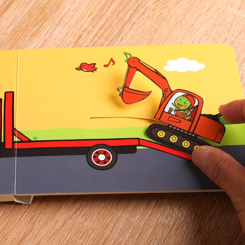 3岁婴儿启蒙早教书 儿童3d立体撕不烂机关书推拉翻翻书 3岁宝宝工程车绘本洞洞书益智汽车玩具书 小小车迷认知书 咔咔挖掘机