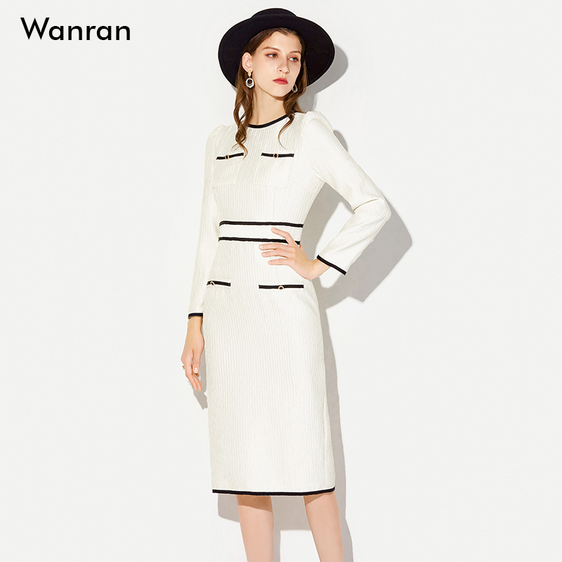 秋装 小香风撞色长袖 女装 圆领气质收腰中长款 连衣裙 时尚 2025新款