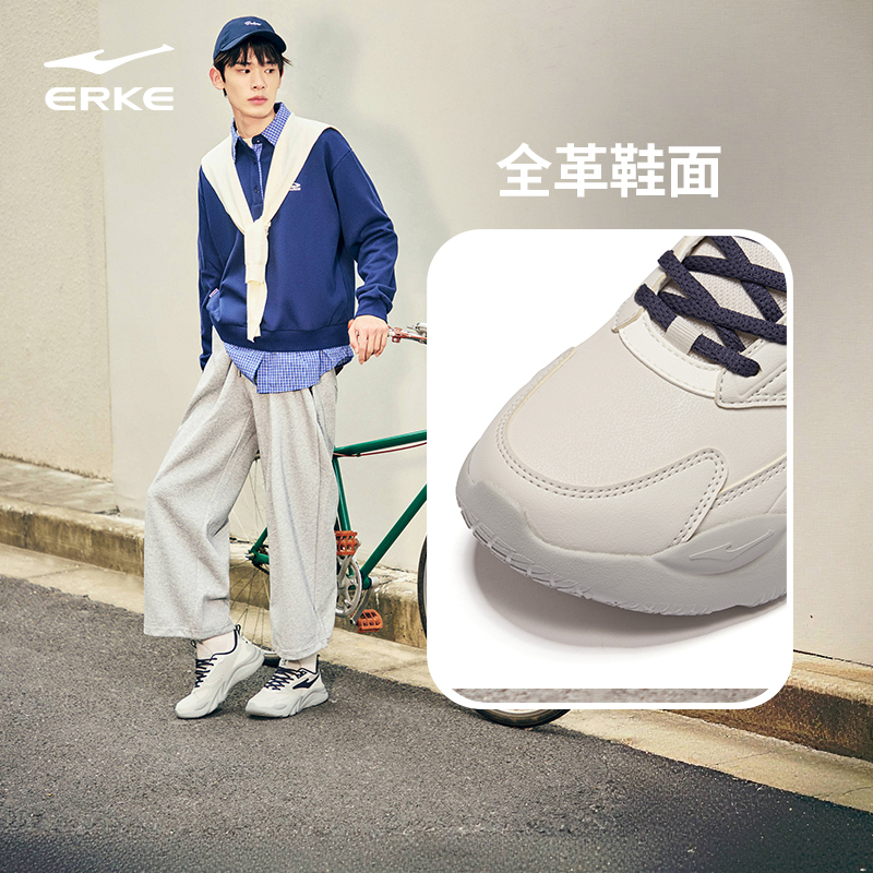 运动鞋 新款 革面休闲鞋 厚底鞋 鸿星尔克男鞋 轻便网面透气跑步鞋 秋季