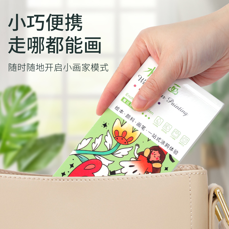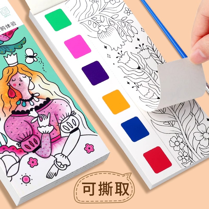 儿童水彩涂色本便签涂鸦画画填色书幼儿园自带颜料便携绘画本绘本