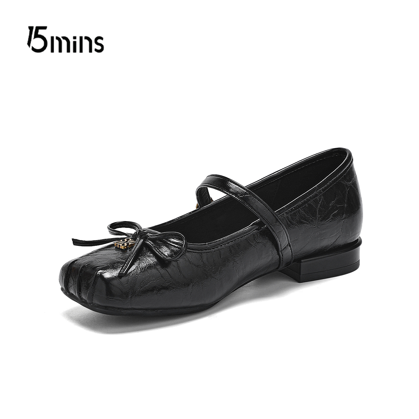 低跟软底小皮鞋 秋季 一字带蝴蝶结玛丽珍 女2025新款 15mins浅口单鞋