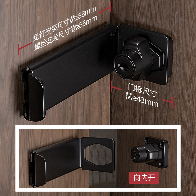 插销门锁卡扣固定移门免打孔90度直角门栓推拉门平移免钉木门