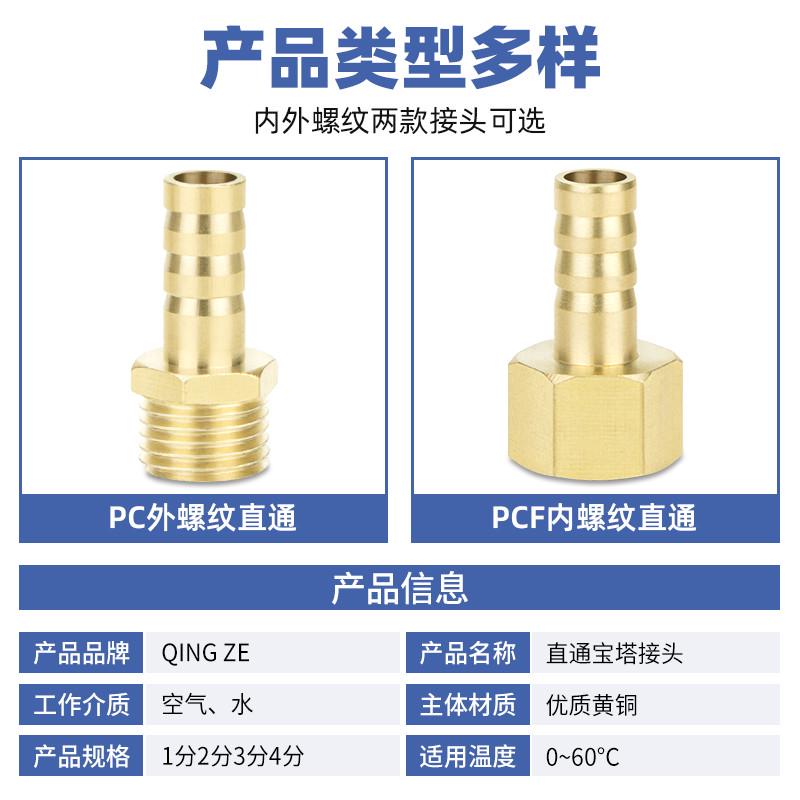 气管全铜宝塔接头PC螺纹直通内外丝PCF皮管软管格林转接头4分6分