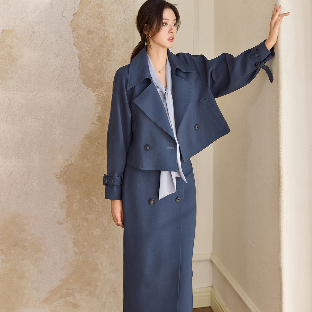 时尚 新款 外套半身裙两件套11065 2025秋季 罗衣气质通勤深蓝色套装