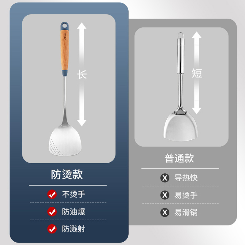 爱仕达锅铲304不锈钢炒菜铲子家用榉木手柄汤勺漏勺线漏铲子厨具