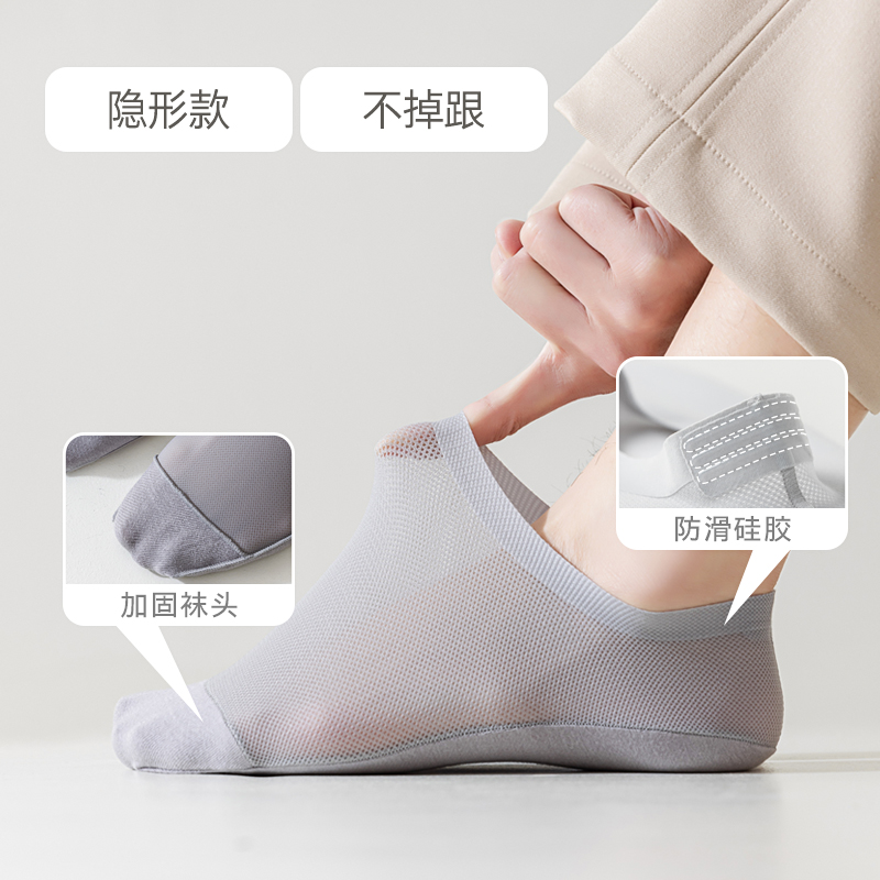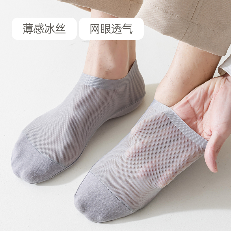 纯棉底短袜套夏天 隐形防滑不掉跟春秋款 冰丝袜子男船袜春夏季 薄款