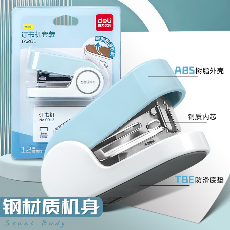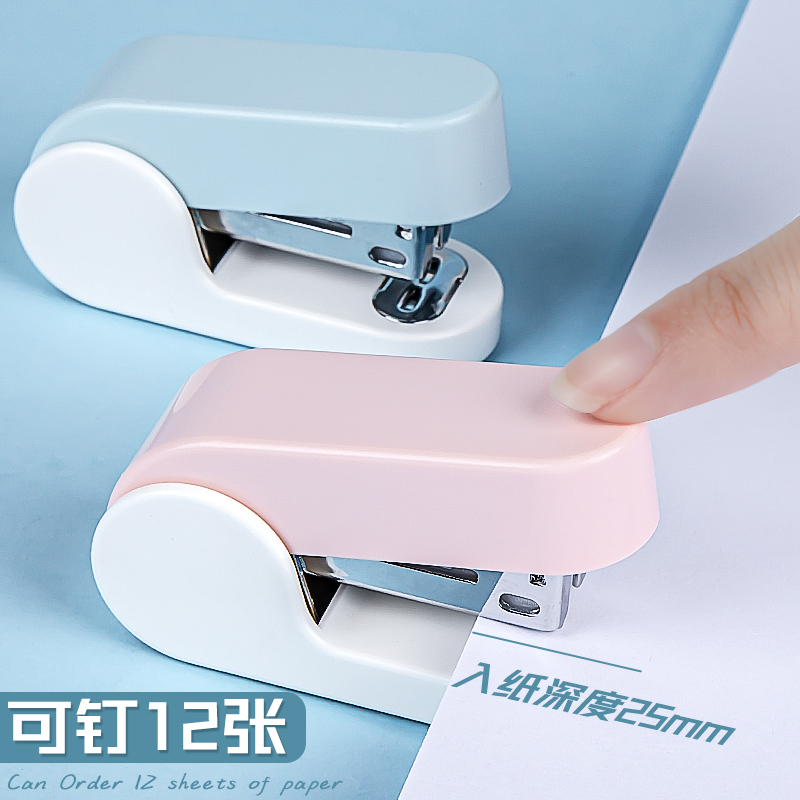 得力订书机迷你小号学生用订书器莫兰迪钉书机小型家用订装 钉子儿童可爱少女心 订机定书机外卖打包专用便携式