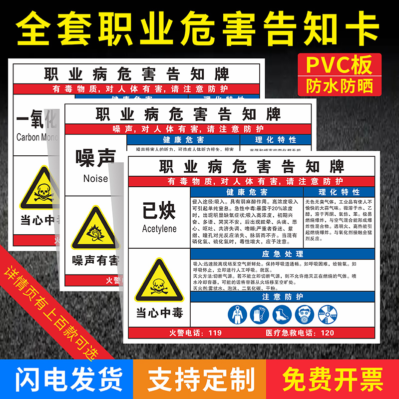 焊锡职业病危害告知卡牌电焊烟尘弧光喷漆作业安全警示牌油墨天那水乙醇高温已炔车间职业病危害标识牌定制