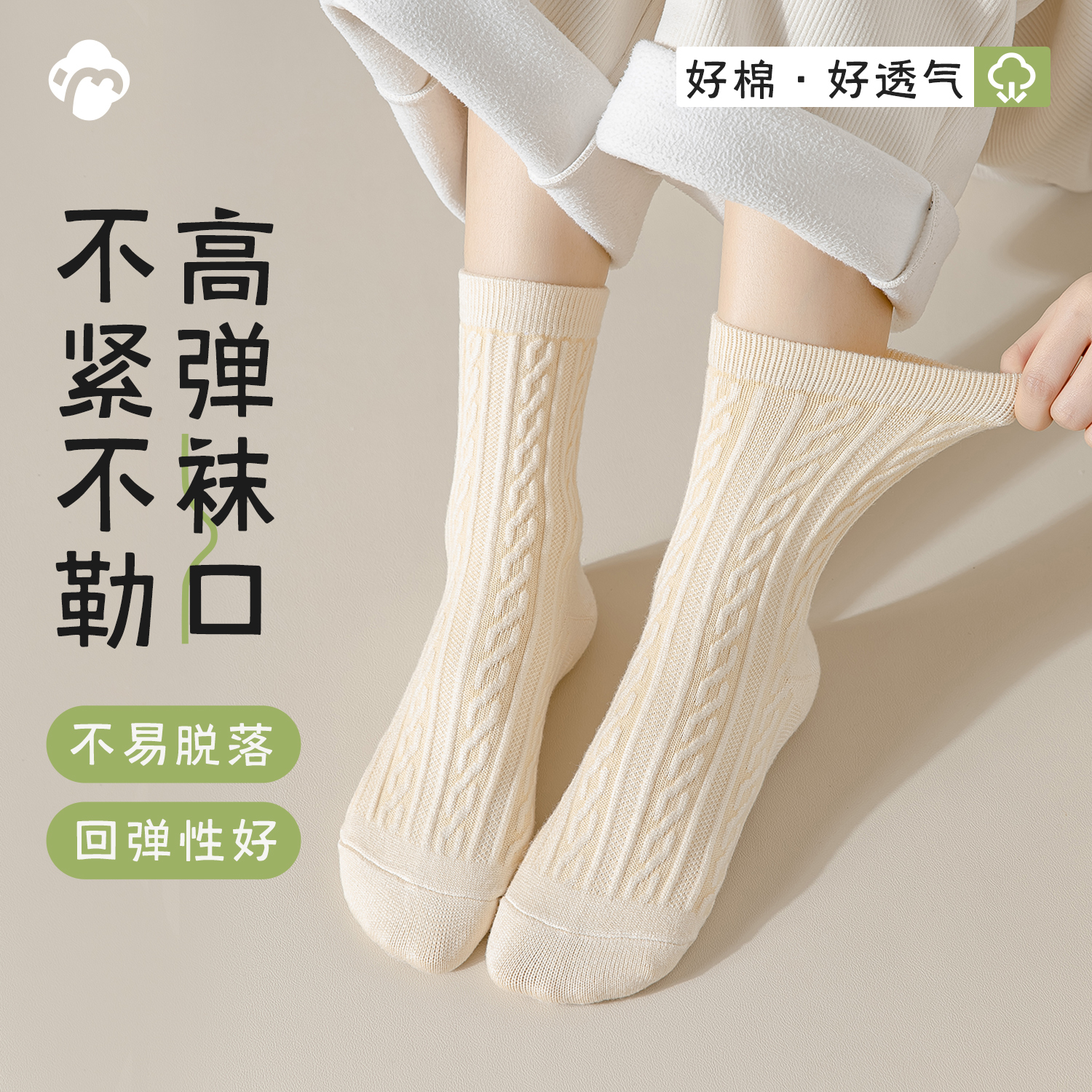 白色袜子女中筒袜春秋款 纯棉底防臭长筒袜ins潮月子麻花女士短袜