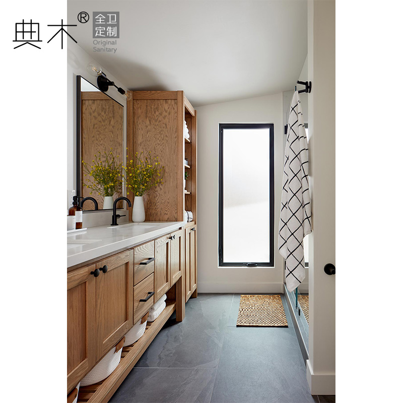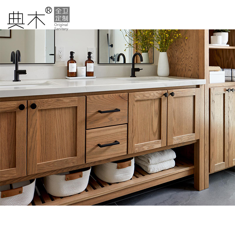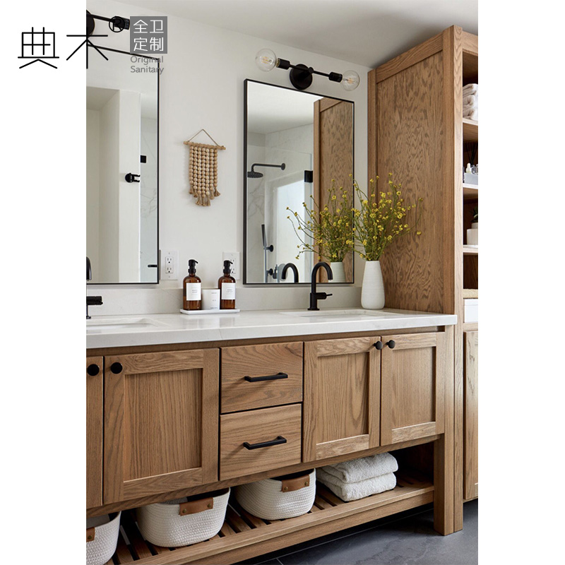 美式 浴室柜组合主卧双盆洗脸洗手盆柜橡木卫浴柜卫生间洗漱台定制