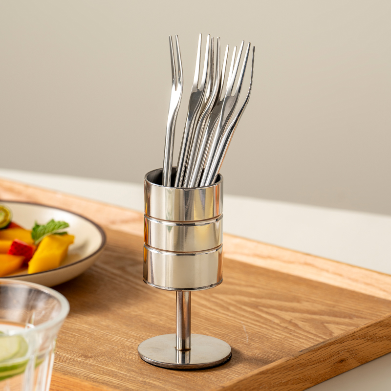 onlycook 高档甜品小叉子收纳儿童果签盅 轻奢304不锈钢水果叉套装