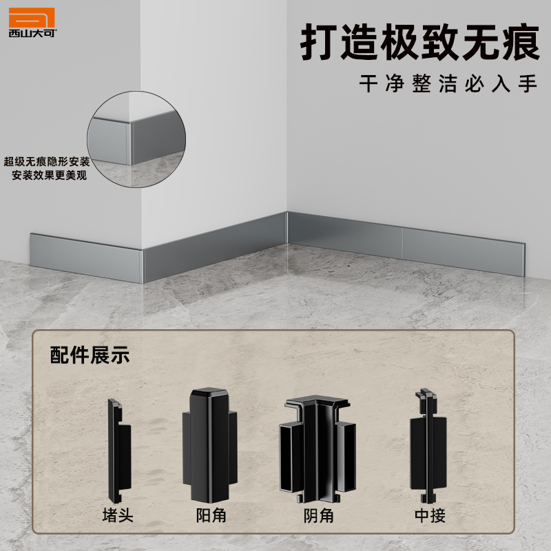 铝合金踢脚线卡扣式 全铝贴脚线条6cm8cm不锈钢超薄极简金属地脚线