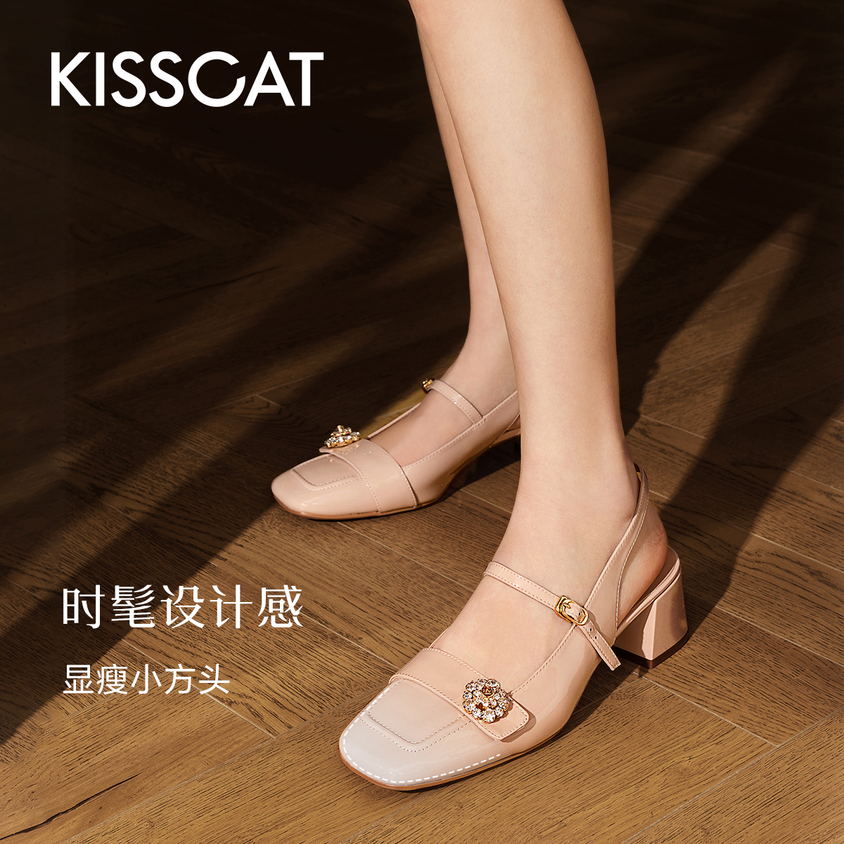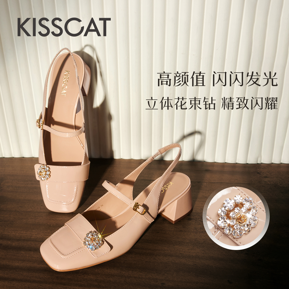 新款 夏季 钻扣法式 空鞋 KISSCAT接吻猫 仙女后空凉鞋 花束玛丽珍