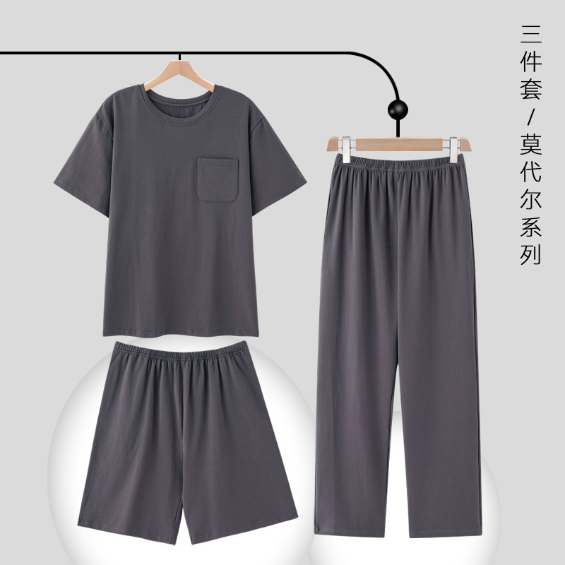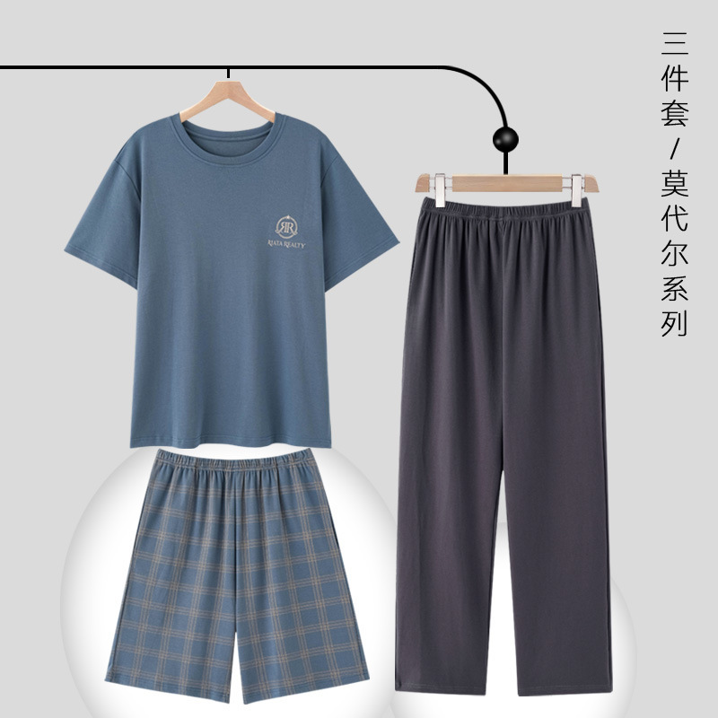 短袖 夏季 2025新款 超火薄款 猫人冰丝男士 可外穿家居服套装 睡衣男款