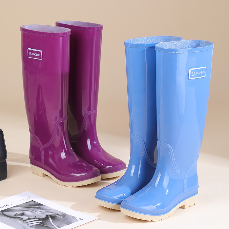 徒步赶海胶鞋 成人42厘米过膝雨靴防水防滑时尚 女款 现货特高筒雨鞋
