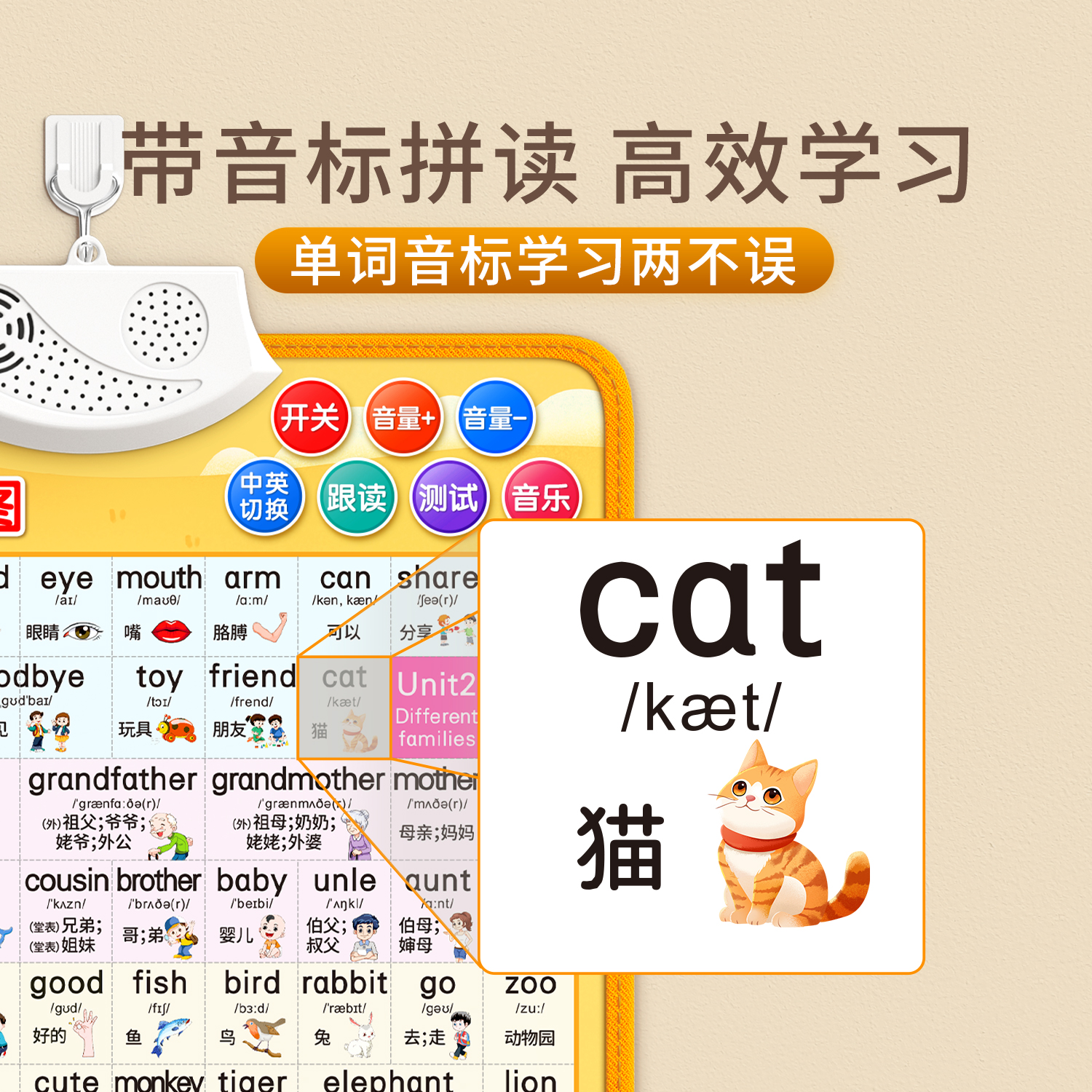 三年级上册英语点读发声书二升三衔接音标和自然拼读小学单词汇总表2025年人教版 新教材全新听力专项训练暑假作业知识大盘点四年级