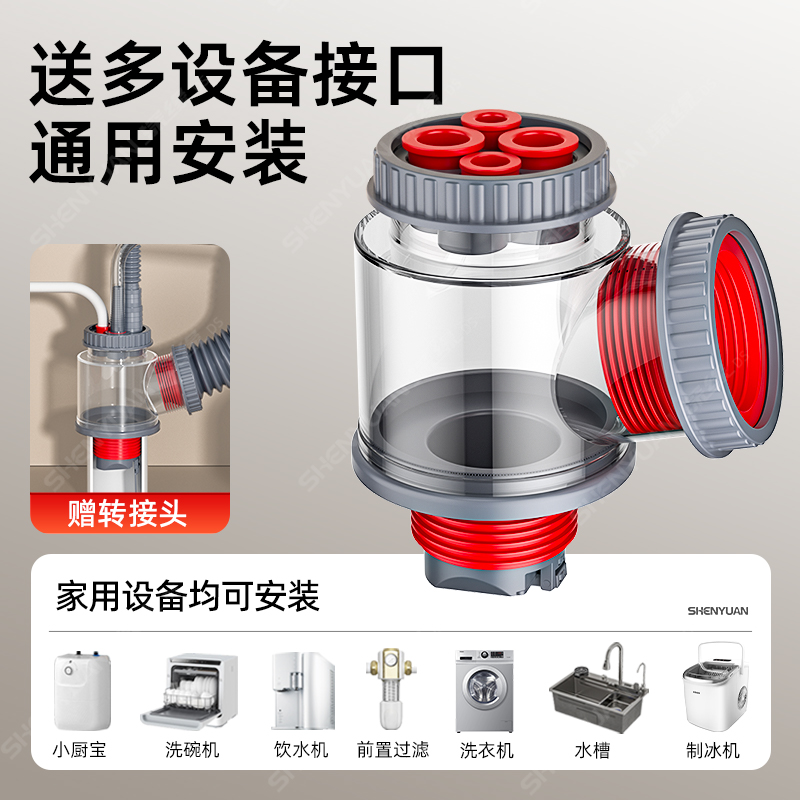 厨房下水管密封塞三头通防返臭水槽排水管小厨宝净水器一分二神器
