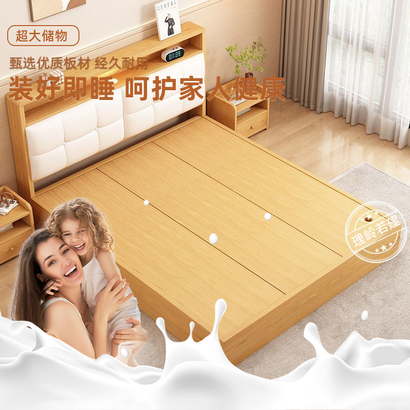 高箱储物床简约现代双人床主卧收纳床板式 床单人床箱体榻榻米大床