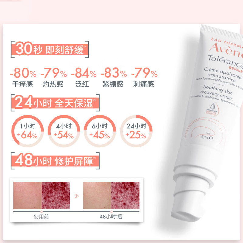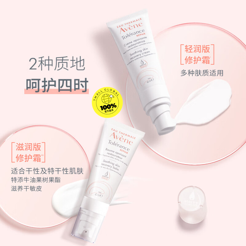 霜轻润版 雅漾专研修护霜舒缓褪泛红面霜敏感肌补水保湿 自营