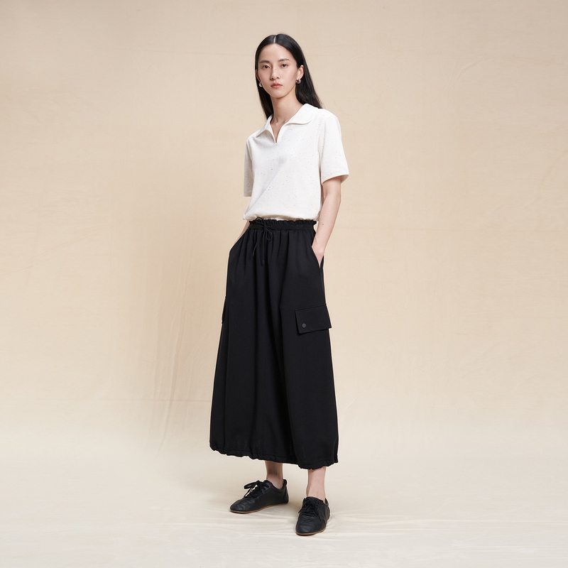 MOVEUP幻走2025冬季 .FUN系列丈根腰头加厚印花压褶复古半身裙 新款