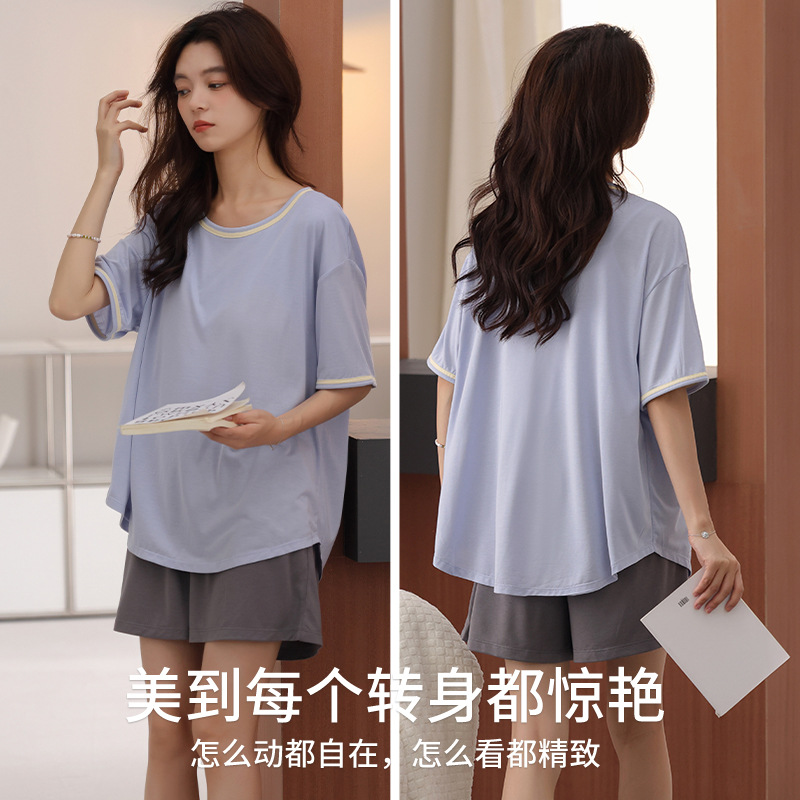 家居服秋冬女款 ubras呼呼睡衣女士短袖 长裤 薰衣草莫代尔长袖 套装