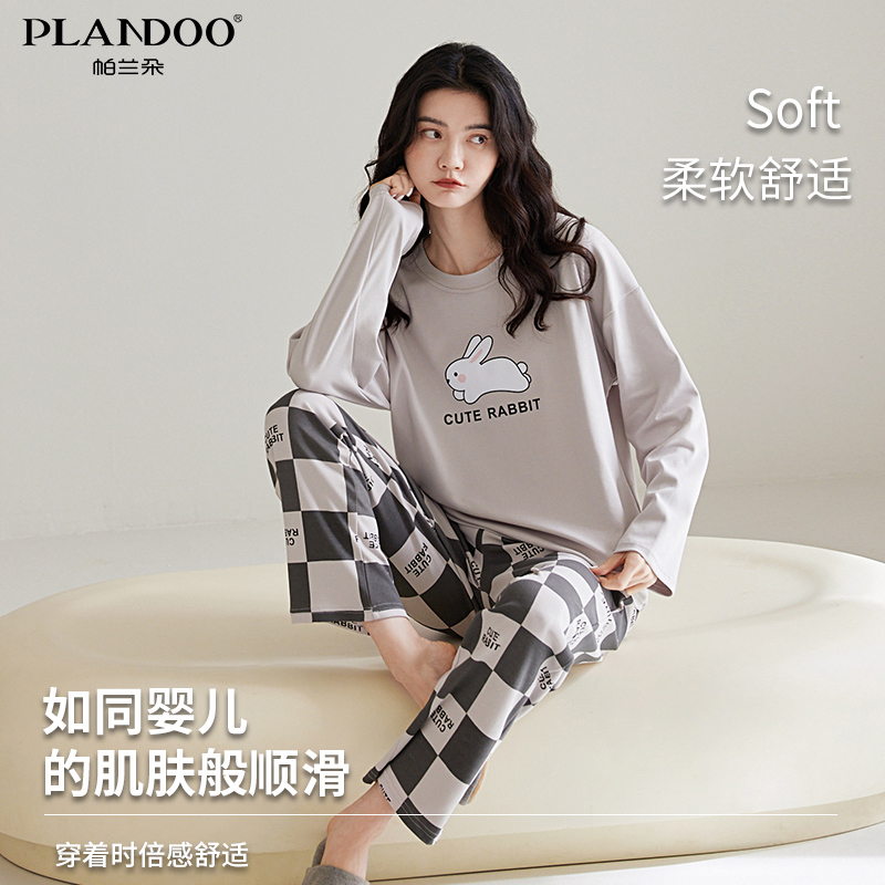 新款 嫚熙幸运鹅秋冬季 牛油果丝柔果棉女士纯棉睡衣情侣家居服套装