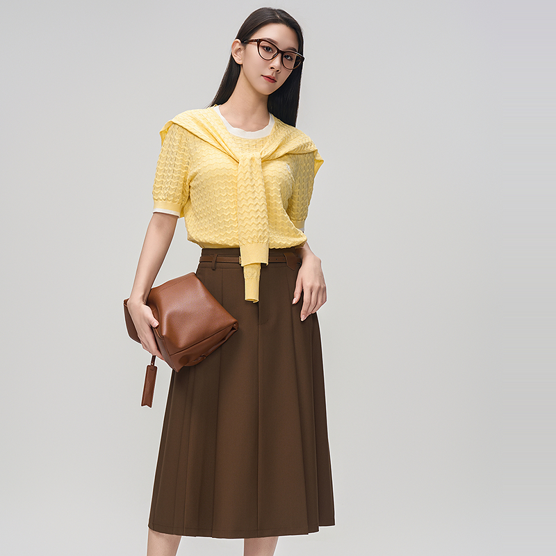 曼诺比菲商场同款 直筒高腰百搭压褶半身裙伞裙MGEQ133153 2025秋季