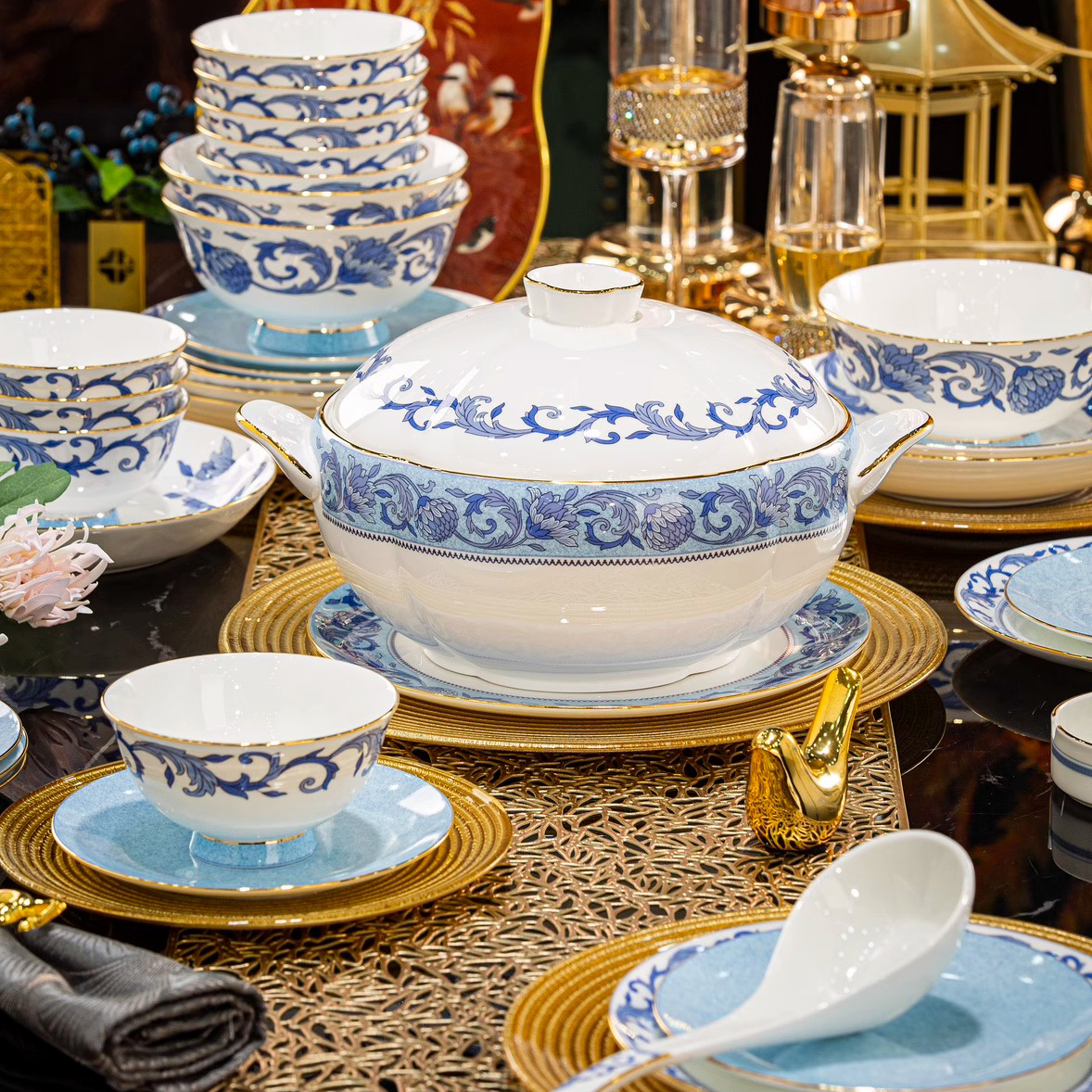 摩登主妇芍药餐具2025新款 家用 釉下彩碗具乔迁新居碗碟筷碗盘套装