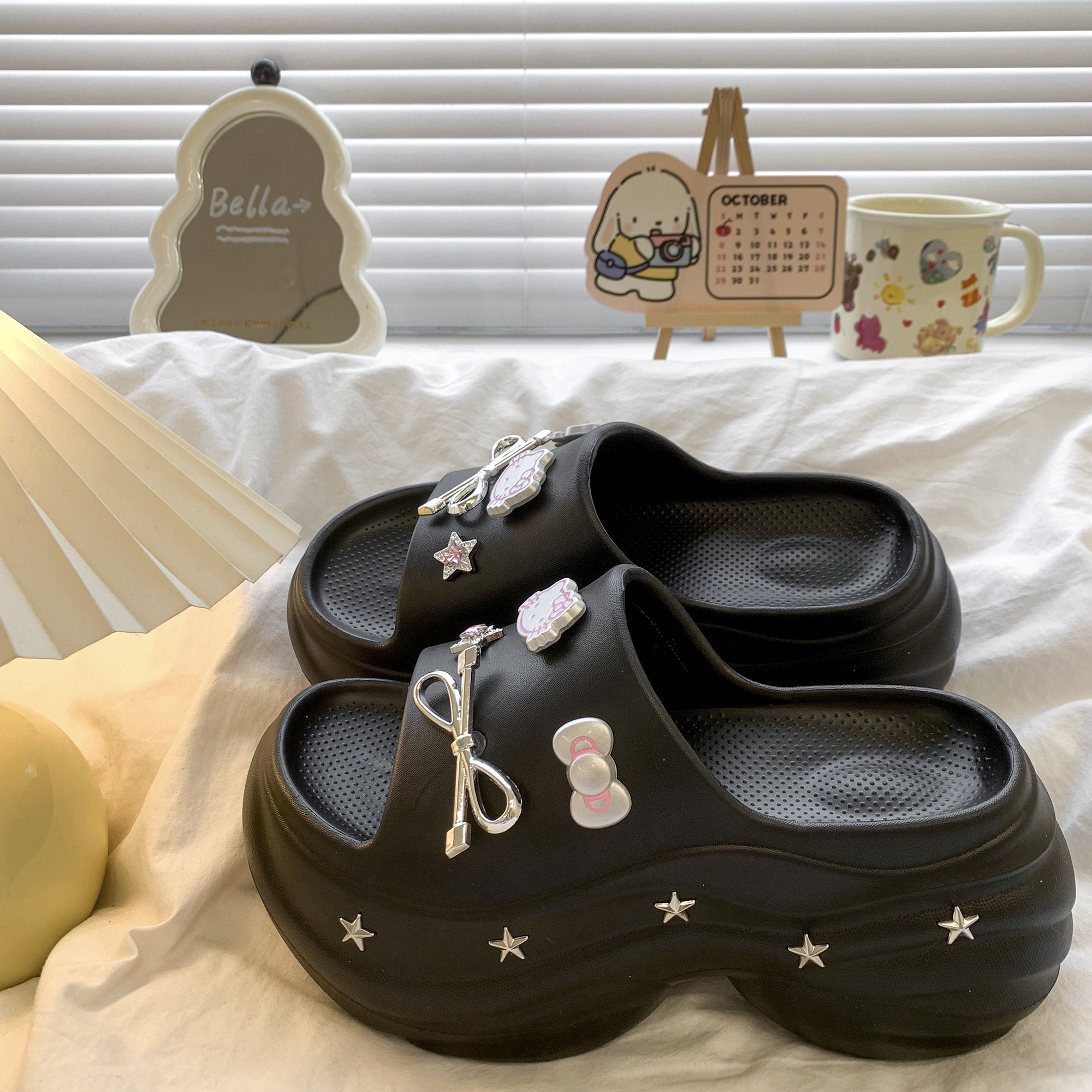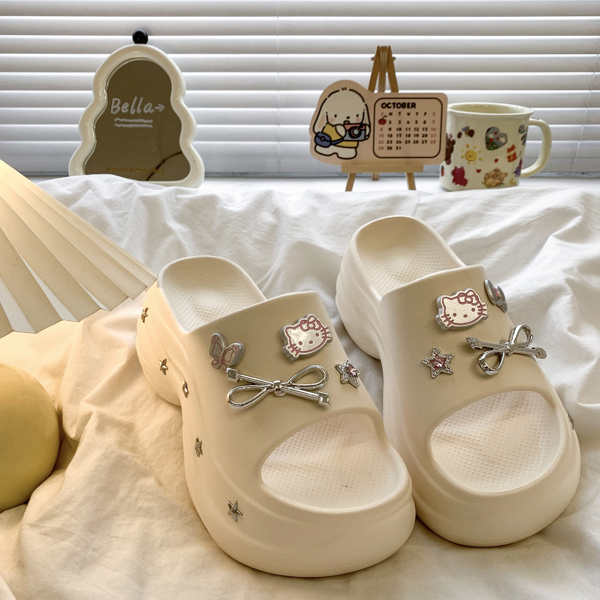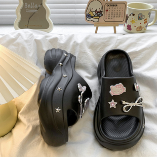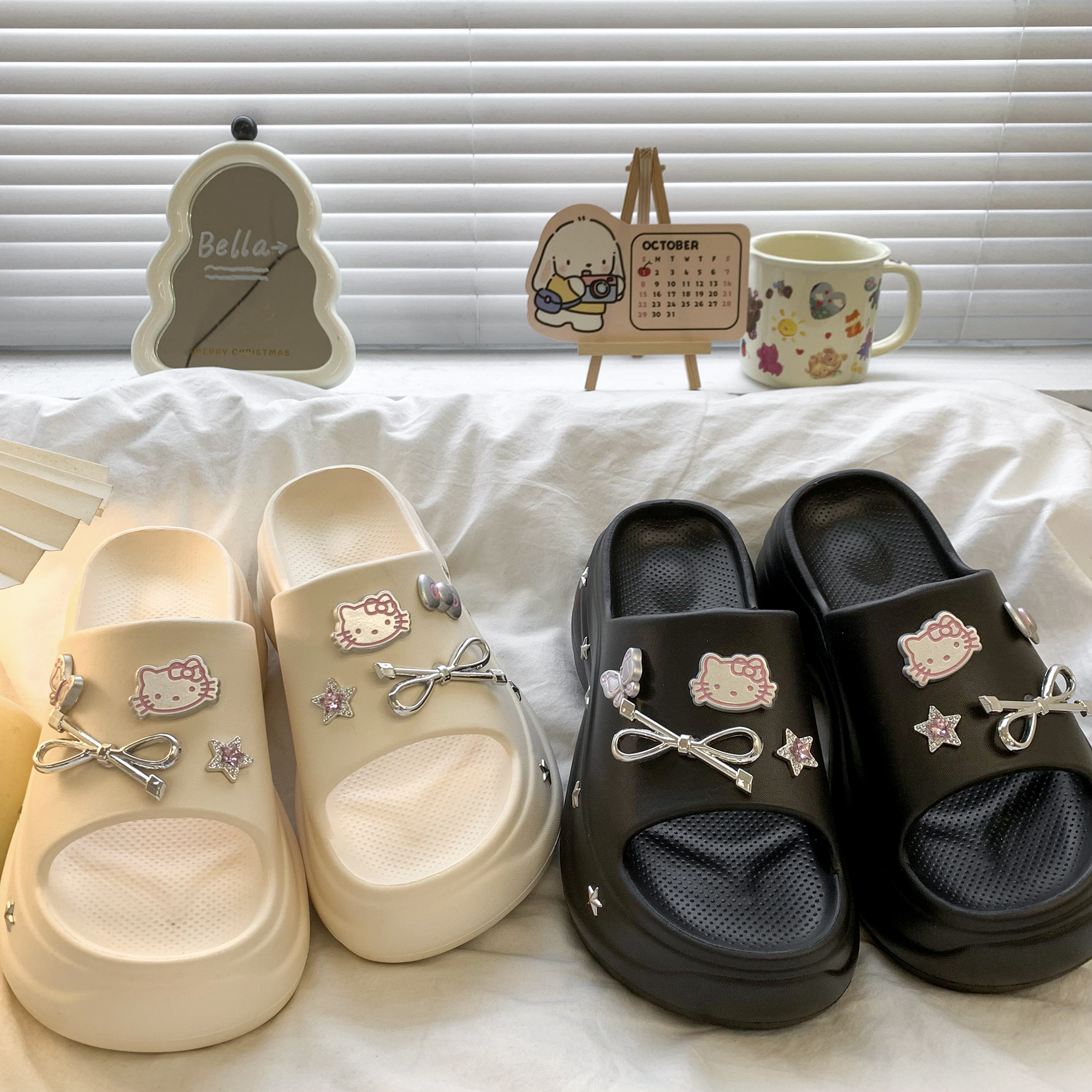 厚底增高外穿可爱猫咪铆钉沙滩防滑凉拖鞋 夏季 2025新款 一字拖女款