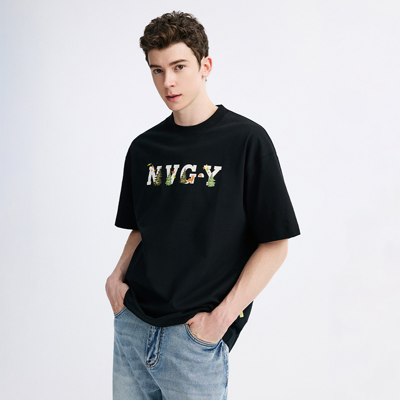 短袖 黑色宽松体恤男士 Navigare意大利小帆船夏季 重磅T恤 冰丝