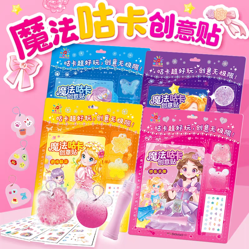 魔法咕卡创意帖俏皮精灵 贴纸书儿童手工diy套装 梦幻公主 快乐天使立体换装 益智玩具手账素材贴贴画女孩 开心派对 全套4册