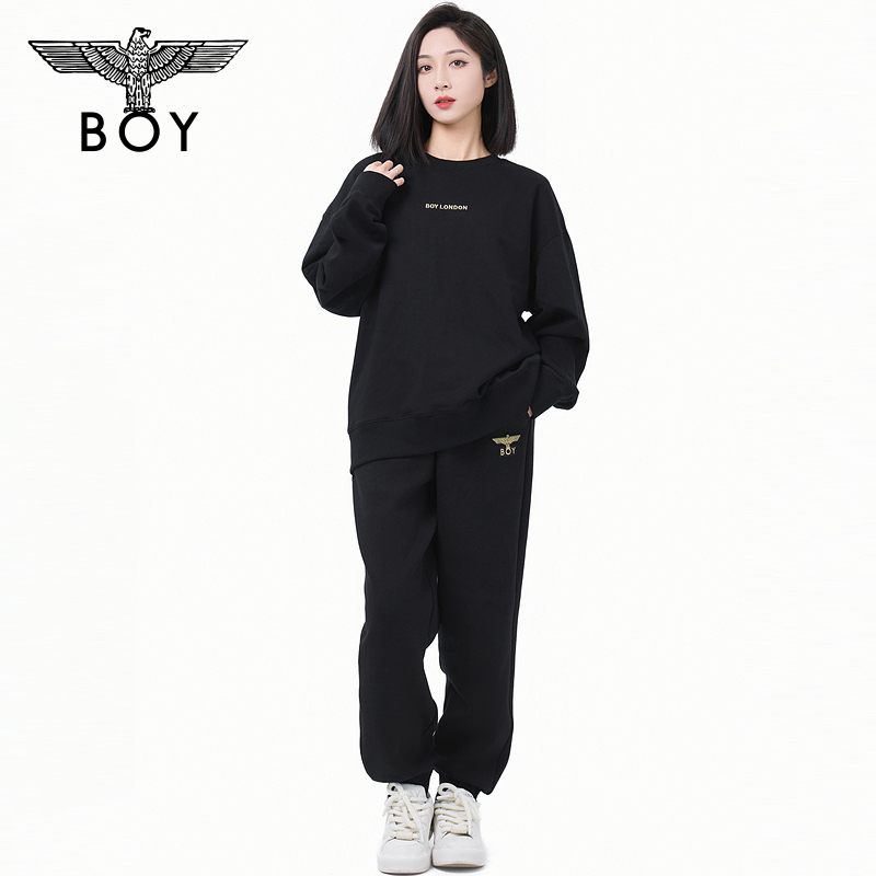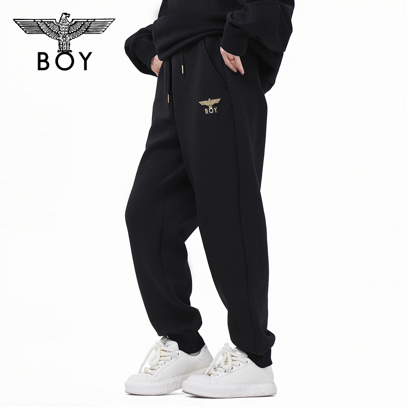 N05094 潮牌束脚长裤 BOYLONDON25男女经典 烫金印花黑色街头时尚